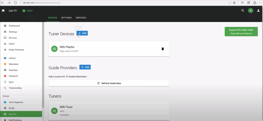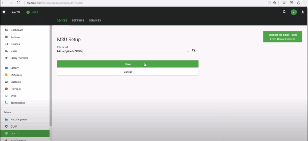 - No channels show up ← Emby may struggle reaching the URL from your network. Confirm it’s accessible and the URL is correct