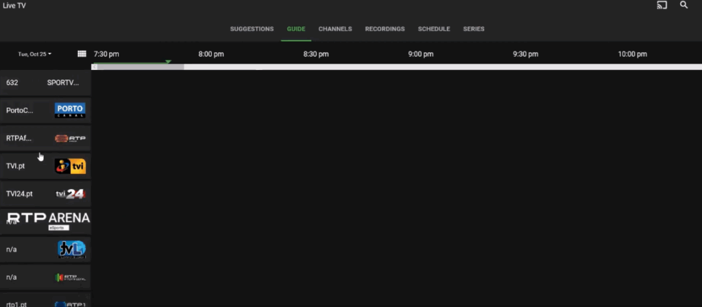 To get EPG (programme guide), go back to Live TV settings and add a guide source: