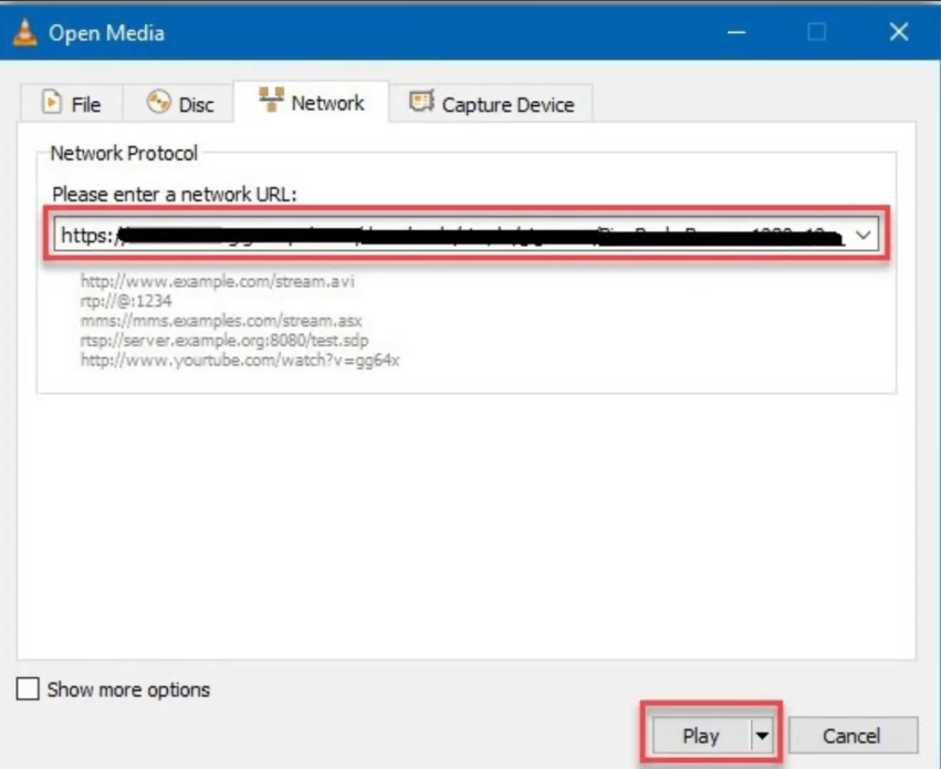 - Click on Media > Open Network Stream (or File > Open Network on macOS).