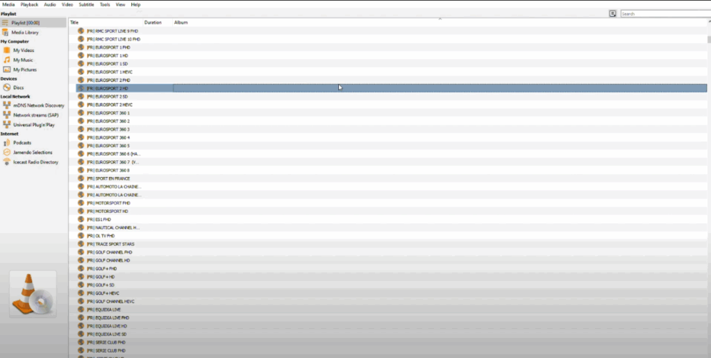 - VLC will load and display the list of channels.