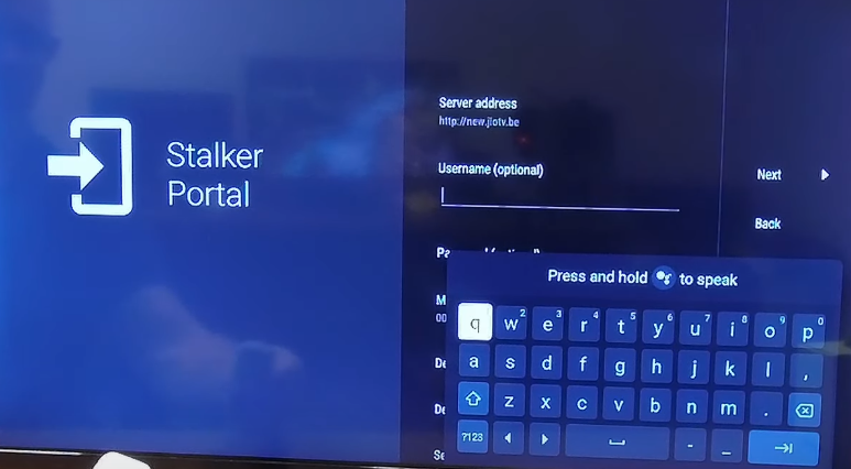 - Enter the playlist URL (M3U), or server URL + username + password (for Xtream/Stalker), then tap Next.